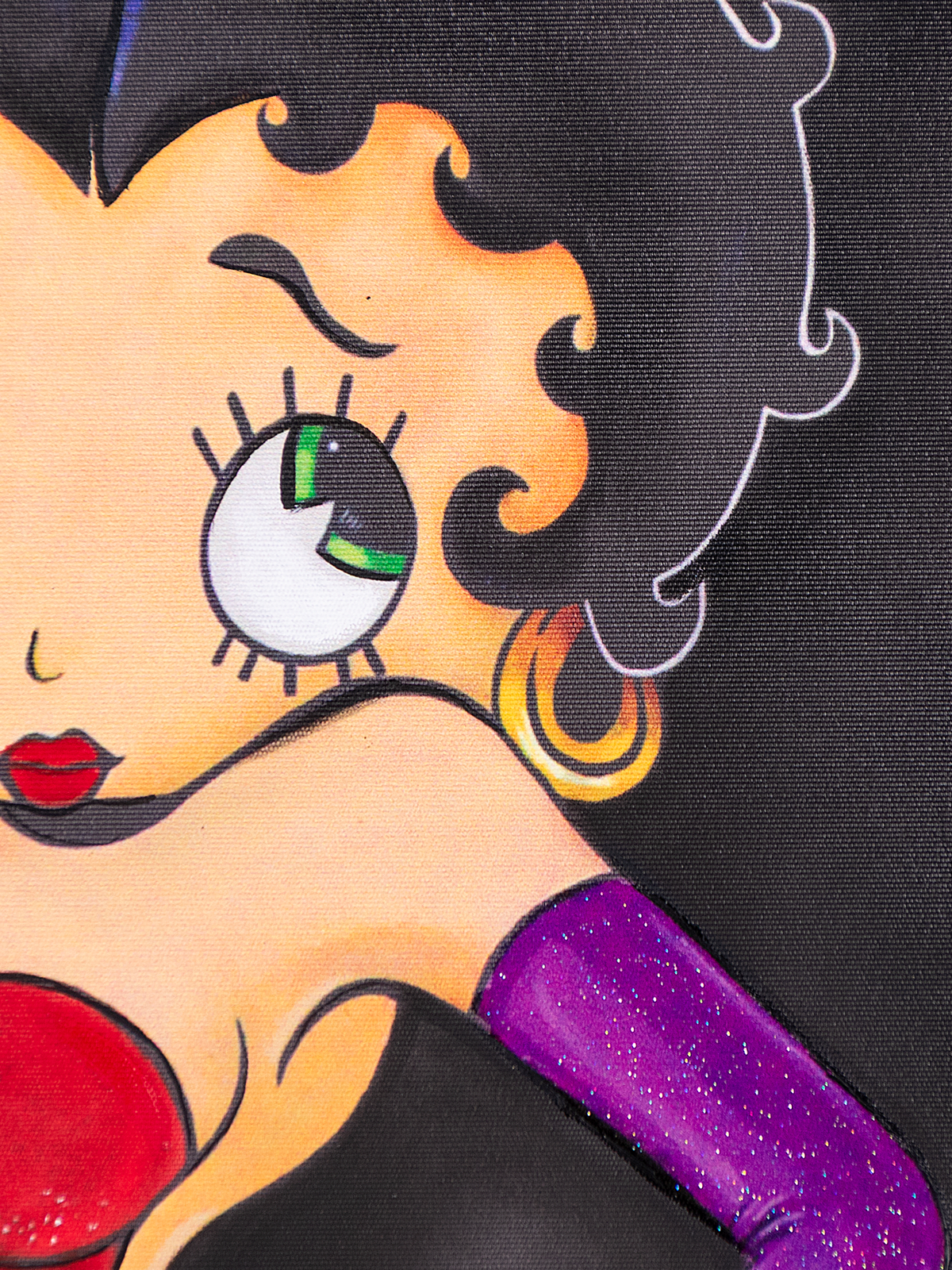 Pintura de Betty Boop y Jessica Rabbit “Betty Rabit”, fusionadas en una sola figura icónica, inspirada en la corriente Pin-up y la estética clásica de los años 40. Esta obra reinterpreta dos símbolos del arte pop y la sensualidad vintage en una composición única, femenina y poderosa. Una reinterpretación personal que combina nostalgia, glamour y arte contemporáneo, ideal para coleccionistas y espacios con carácter.