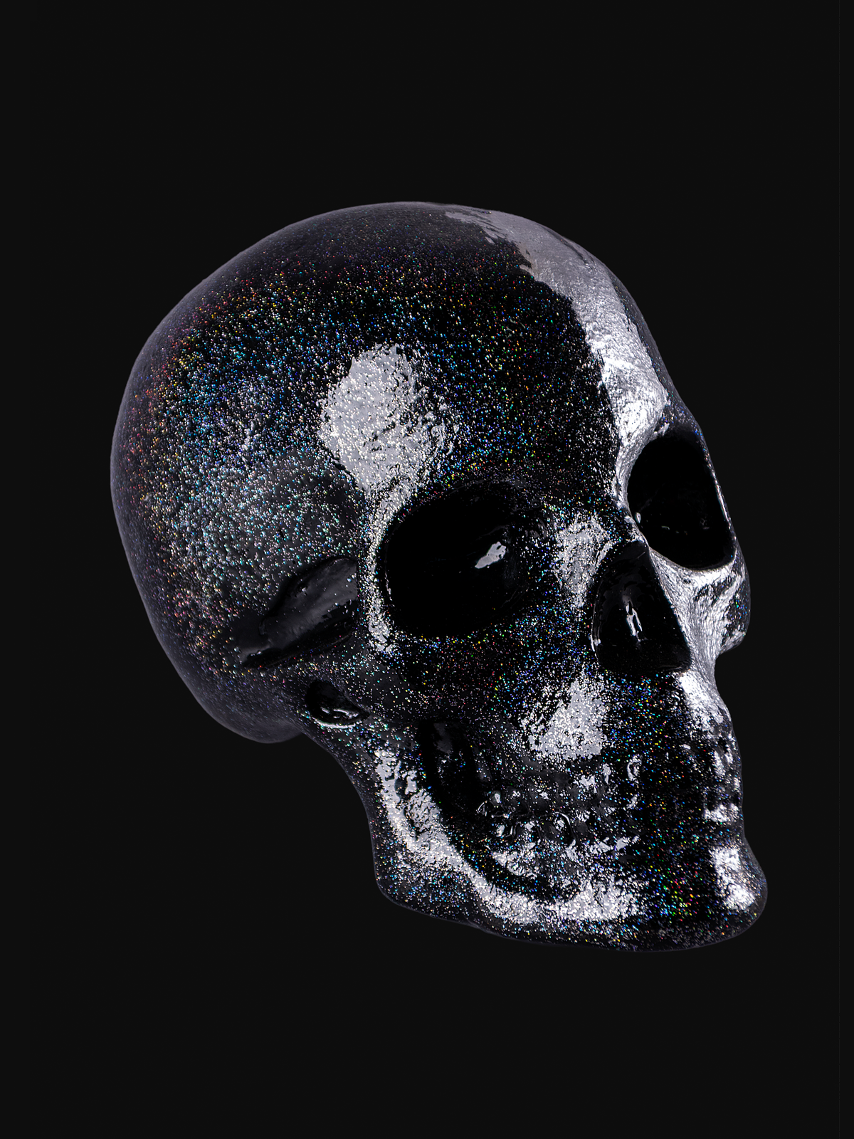 Escultura de craneo brillante