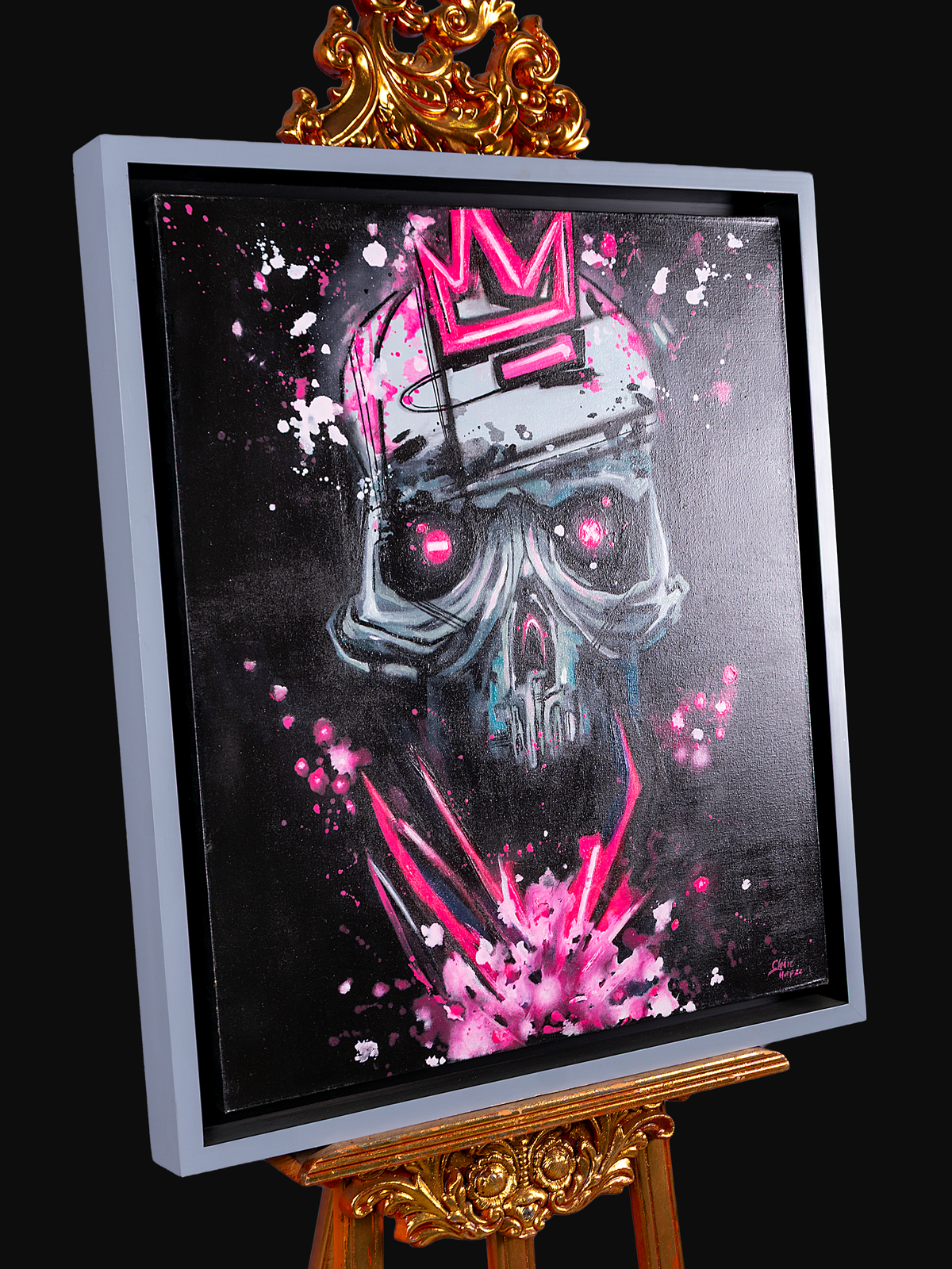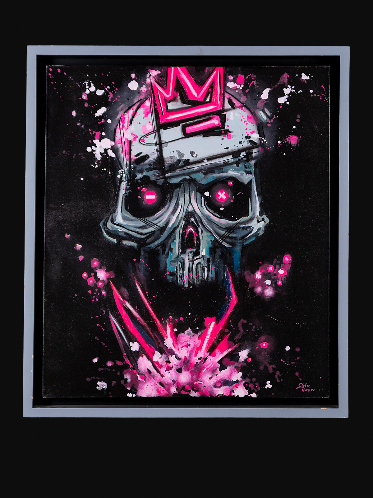 Lienzo sobre bastidor de madera, misxa en óleo, detalles de acrílico y texturas efecto neón. |